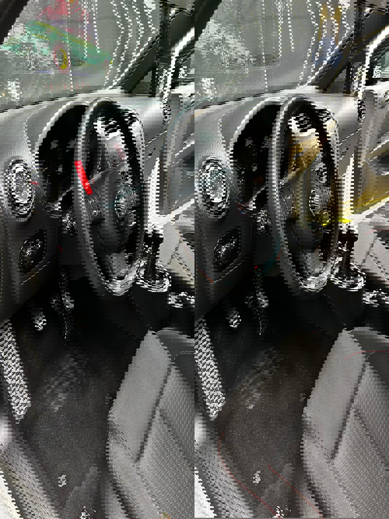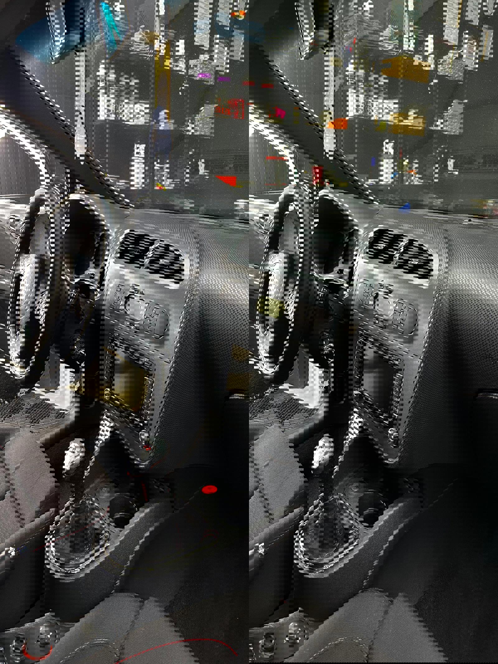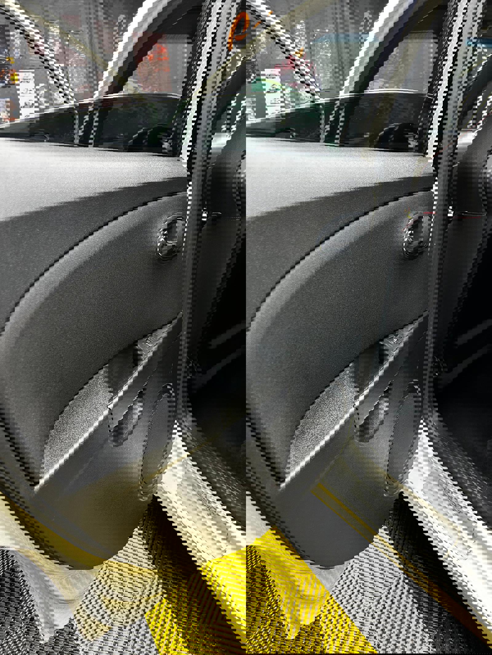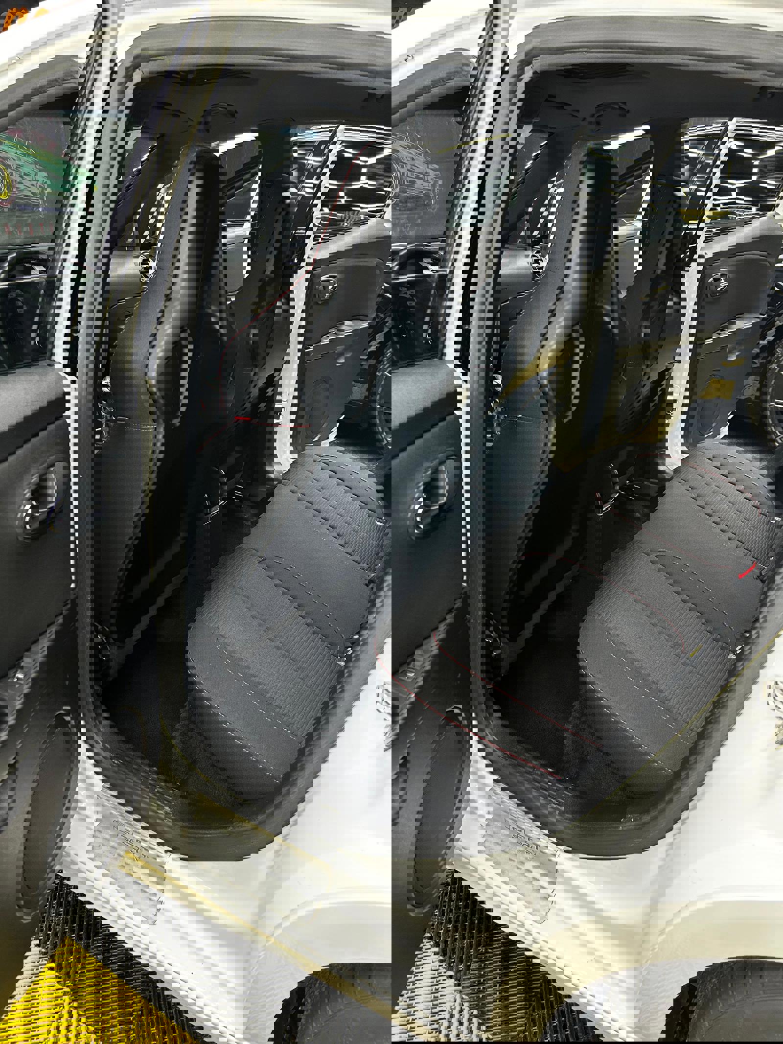 -interior textil cu scaune scoică Cupra și plafon negru