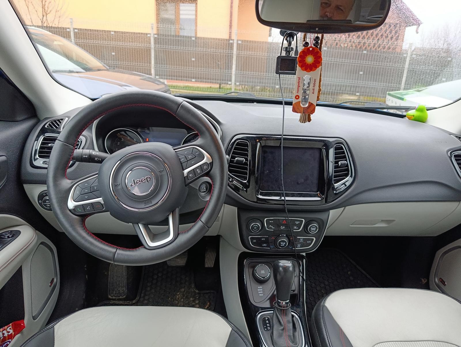 Vand Jeep Compass Limited, an 2020, cutie automata, motor 1.4 benzinq, 170 cp, 4x4, km 127000, panoramic, tapiterie piele alba, scaune electrice si incalzite fata, senzori ploaie, lumina, distronic, asistent faza lunga,pilot automat.